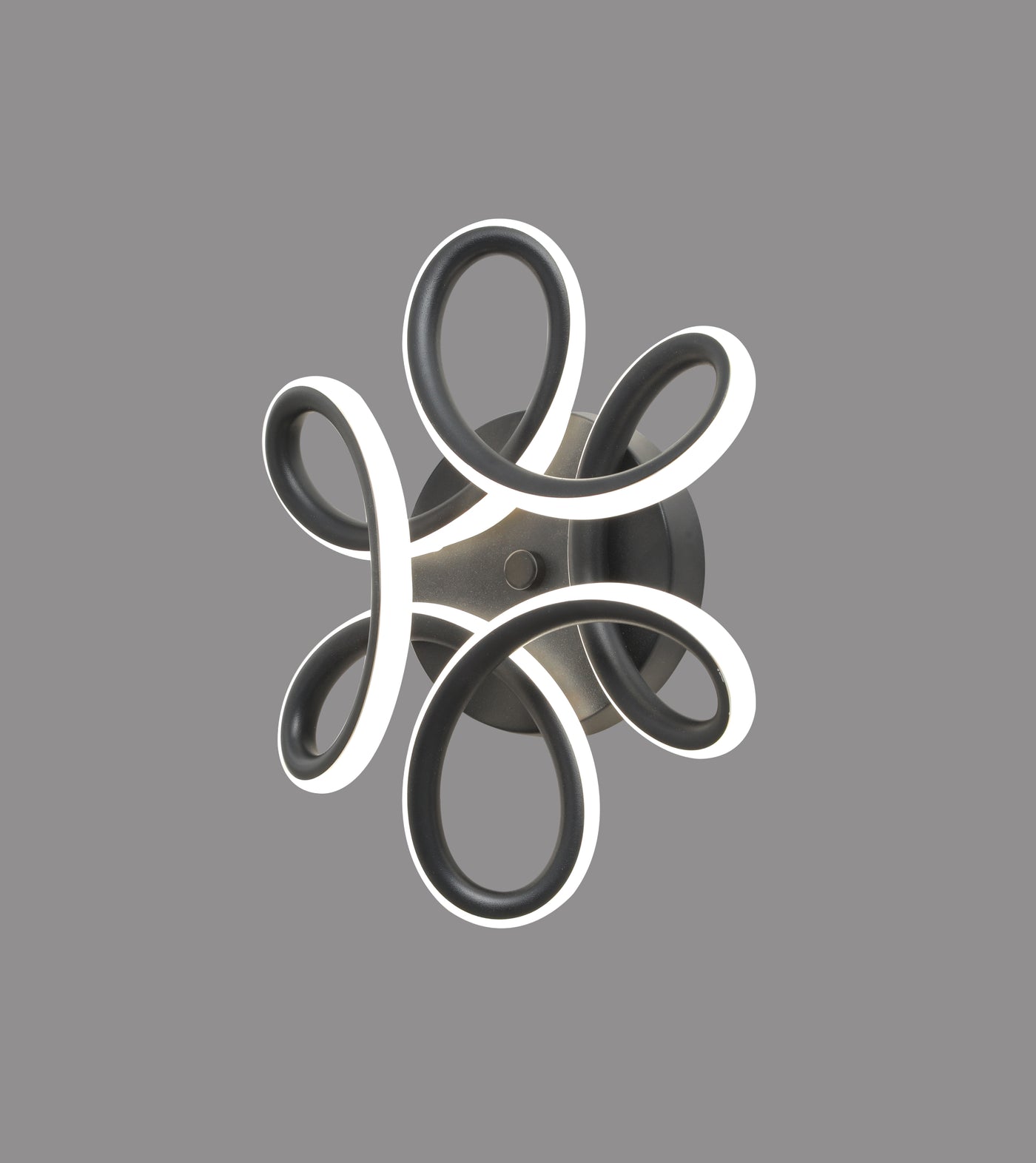 Aplica LED SX7137 BK atrage atenția prin forma sa fluidă, cu bucle iluminate ce oferă un efect decorativ deosebit. Realizată în finisaj negru și având o putere de 56W, aceasta emite lumină cu temperatură reglabilă între 2800K și 6500K. Cu dimensiuni de 240 x 240 mm, este o soluție de iluminat eficientă și modernă pentru montaj pe perete. Nu dispune de telecomandă.