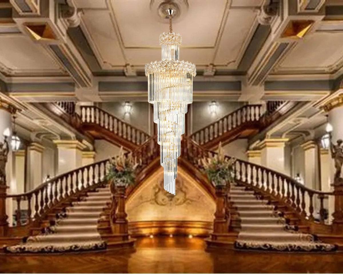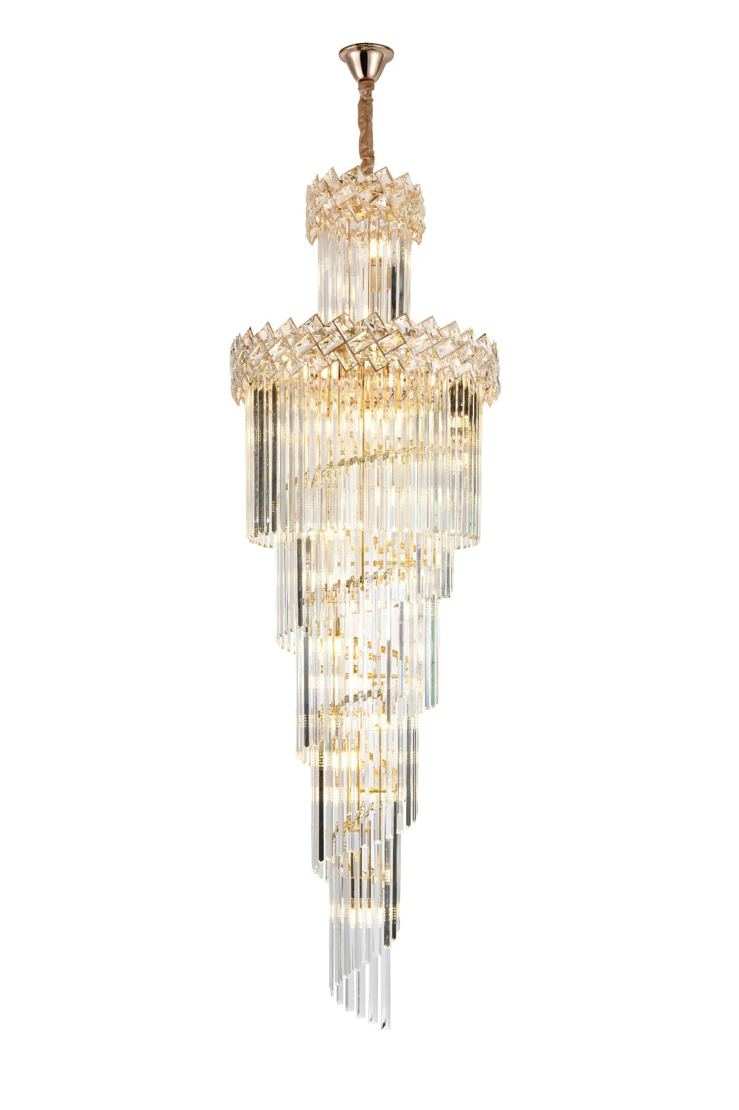 Candelabrul SX8650/600×1800 FGD este o piesă de iluminat spectaculoasă, creată pentru a aduce eleganță și rafinament în orice spațiu. Cu o înălțime de 1800 mm și un diametru de 600 mm, acest model atrage privirile prin forma sa impunătoare și finisajul auriu premium.