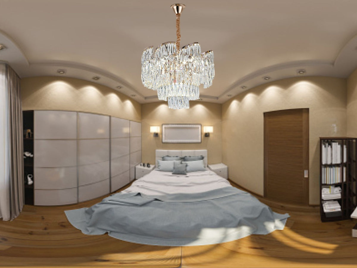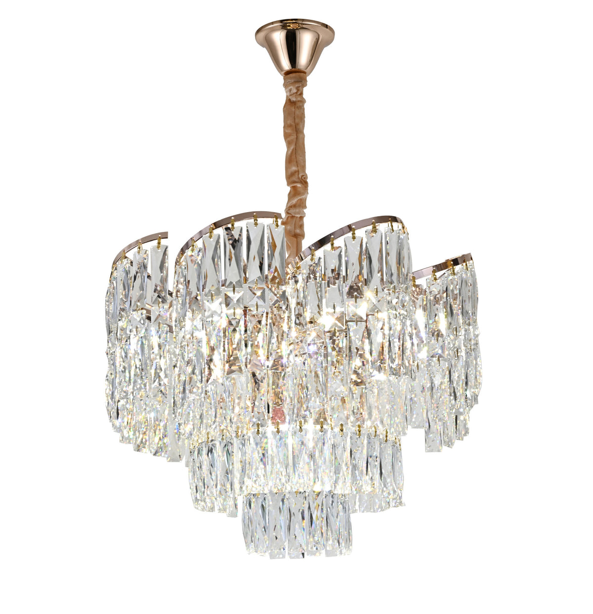 Candelabru cu cristale fațetate, 6 becuri E27, Ø400×H380 mm, finisaj auriu, design în cascadă