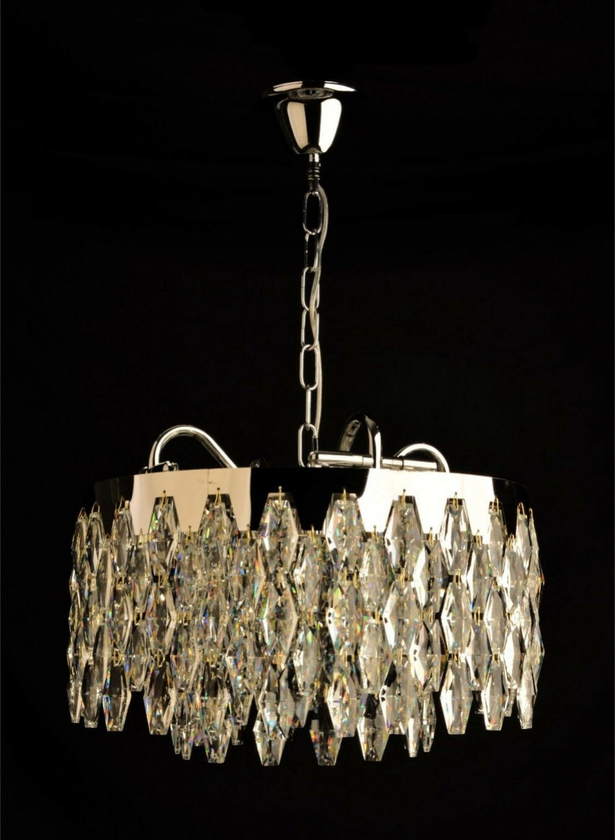 Candelabru elegant cu cristale decorative, structură cromată, montaj suspendat, 8 surse E27,400cm