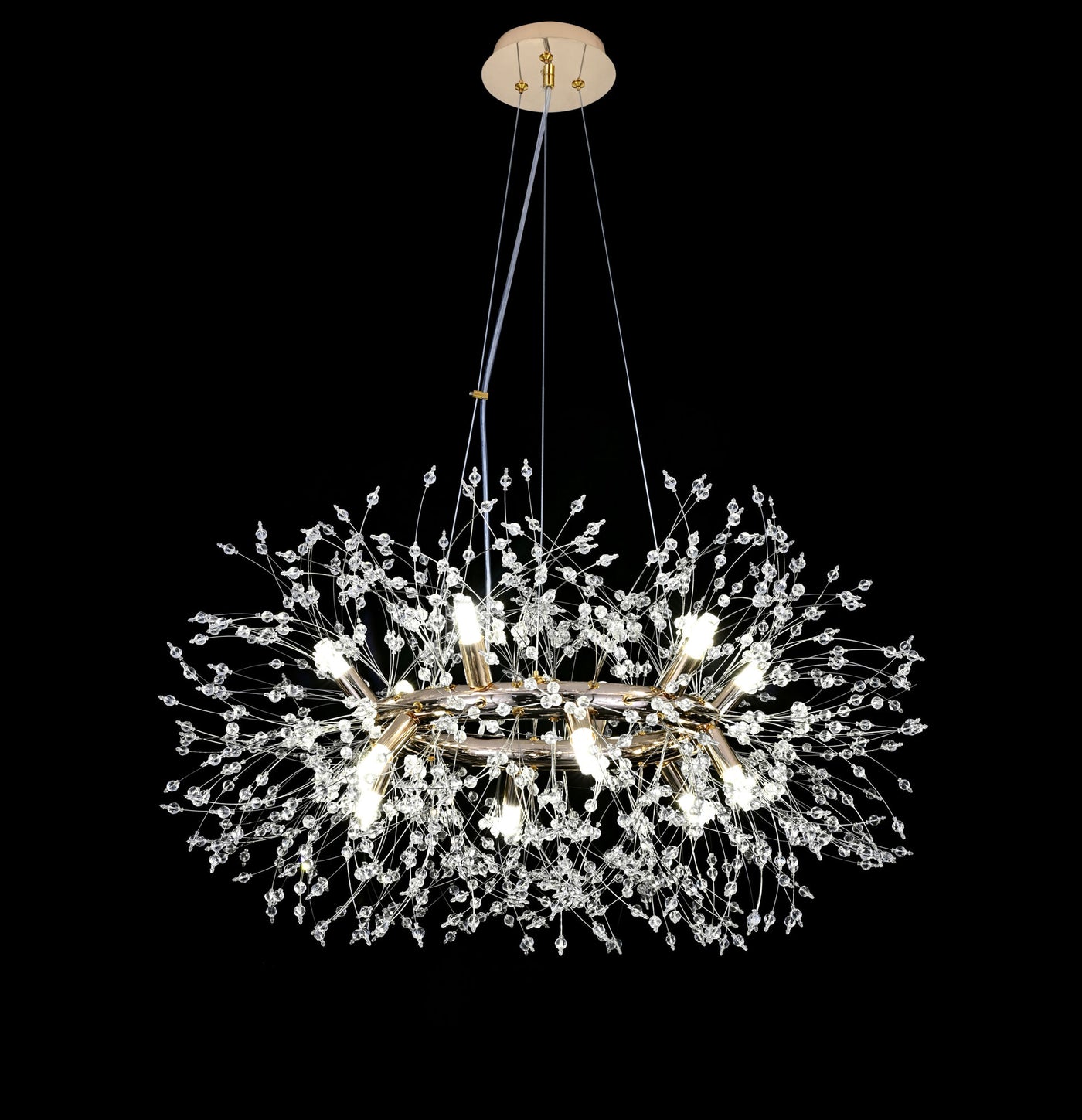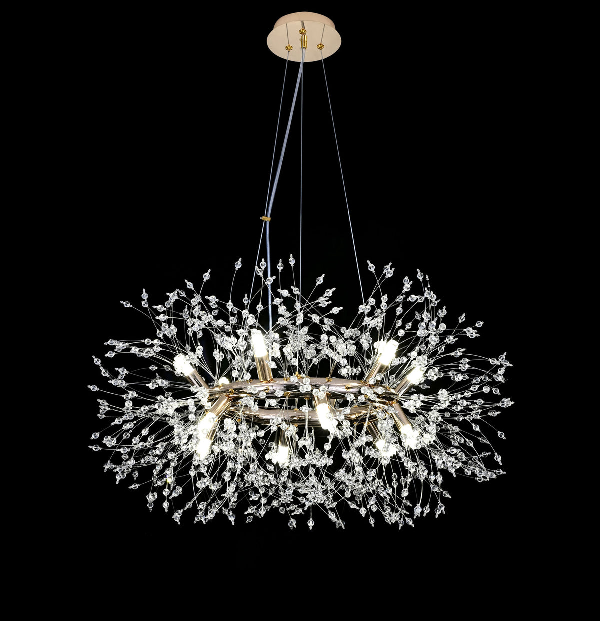 Un adevărat spectacol de lumină și design! Candelabrul 26022/9FGD impresionează prin forma sa inedită inspirată din natură, cu ramuri fine decorate cu cristale delicate ce reflectă lumina într-un mod elegant. Este alegerea ideală pentru spații moderne și sofisticate, precum livinguri înalte, săli de recepție, scări interioare sau zone de dining cu design statement.