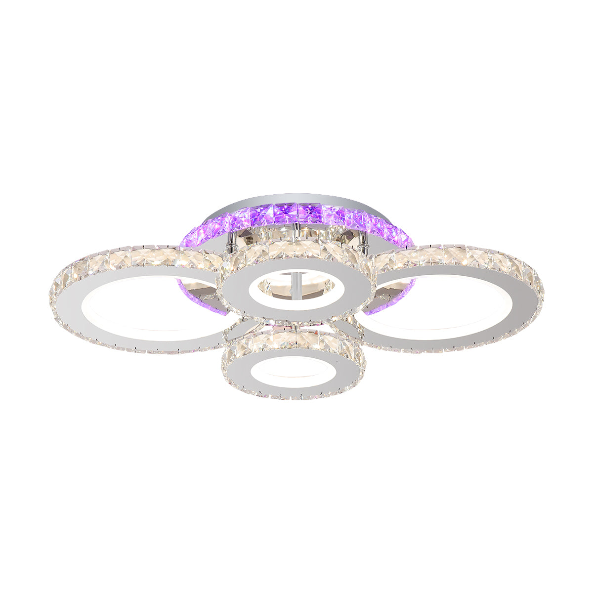 Lustra LED 2875-4 imbina eleganta cristalului cu tehnologia moderna RGB si iluminare reglabila, fiind alegerea ideala pentru interioare contemporane. Cu un design inedit cu 4 cercuri decorative si lumina ambientala colorata, ofera un efect spectaculos si control total prin telecomanda.