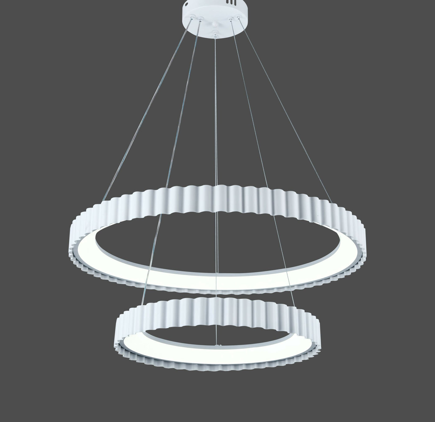 Pendul LED dublu alb suspendat cu telecomandă – design ondulat modern – 122W – L77259/400+600 WH