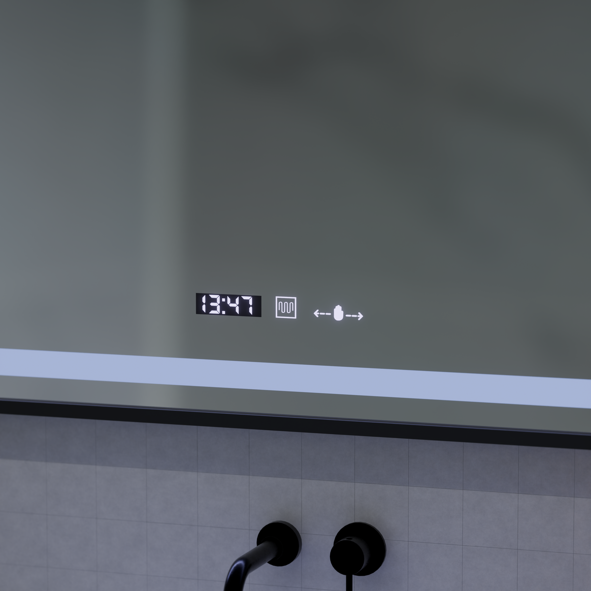 Oglinda LED Senzor cu functie Dezaburire Termometru Ceas 120x65 cm Lumina Rece/Calda/Neutra Dimabila, Rama Negra