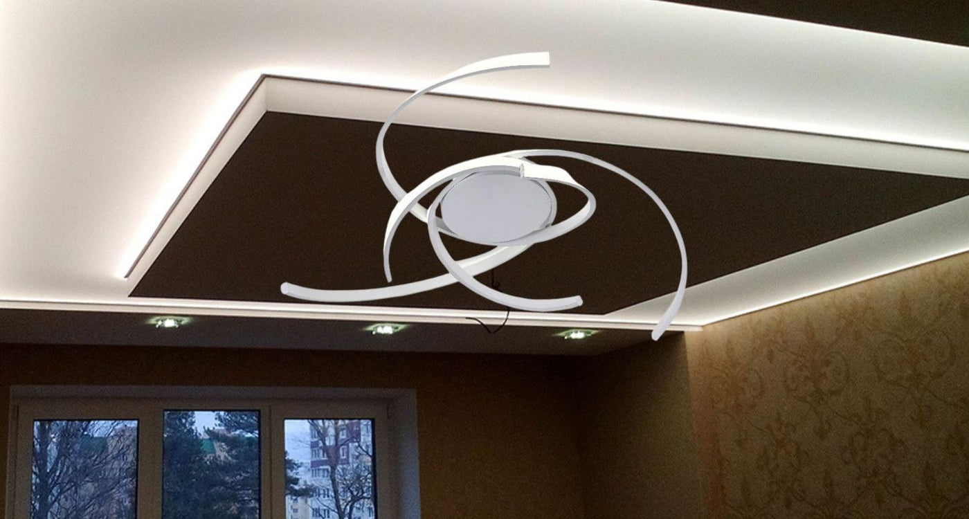 Lustra LED cu design curbat modern, 90W, Ø580×H110 mm, lumina reglabila 3000K–6500K, telecomanda inclusa
