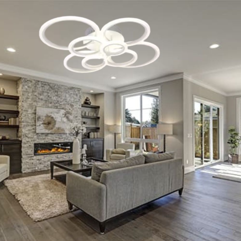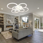 Lustră LED cu telecomandă 8067/4+4, Design cu Inele, 300W, alb