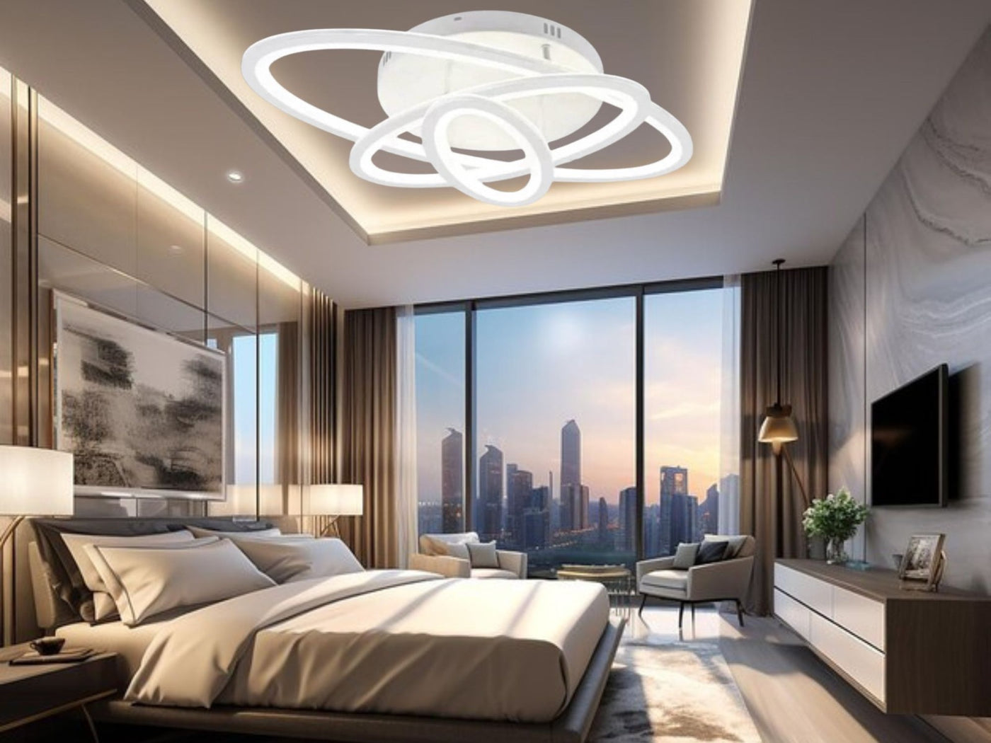 Modelul 19082/3WH este o lustra LED eleganta,ideală pentru încăperi moderne precum dormitor, living sau birouri cu un diametru generos 68x30x9.Temperatura de culoare este reglabilă intre 3000K și 6500K.