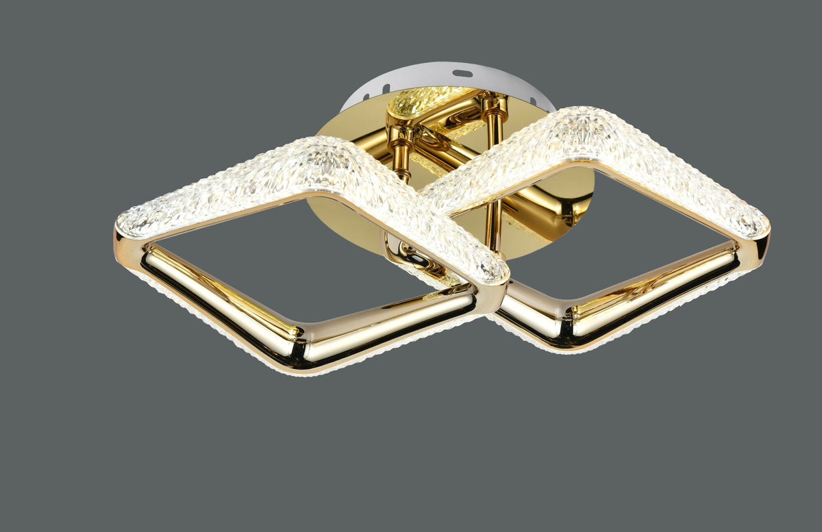 Lustra LED P013-2 aduce eleganță și strălucire în orice spațiu modern. Designul său cu două pătrate împletite, finisate în auriu lucios, oferă o notă sofisticată și luxoasă, perfectă pentru living, dormitor sau dining.