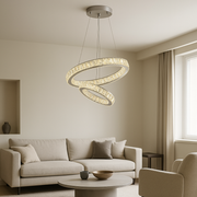 Ridică nivelul de eleganță al oricărui spațiu cu pendulul LED 751-5+3, format din două inele concentrice de 500 mm și 300 mm, tapetate integral cu cristale rectangulare strălucitoare. Suspensia pe cabluri subțiri conferă un aspect aerian, în timp ce LED-ul integrat iluminat prin cristale creează o aură luxoasă, ideală pentru livinguri înalte, scări interioare, zone de recepție sau săli de evenimente.