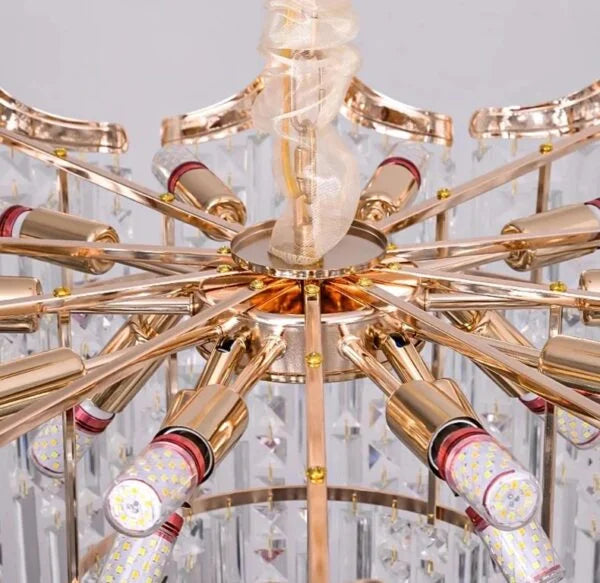Candelabru Auriu cu Cristale – 20×E27, Ø78 cm, Impunător și Strălucitor