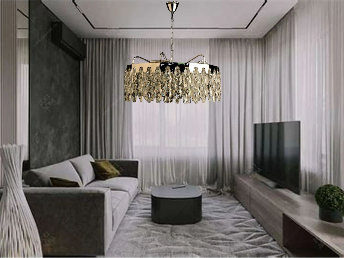 Impunător și strălucitor, acest candelabru cu 12 surse de lumină este piesa centrală perfectă pentru spații largi care necesită un decor rafinat și iluminare intensă. Realizat cu detalii prețioase din cristale fațetate și structură metalică cromată, aduce un plus de eleganță și lumină în orice interior.
