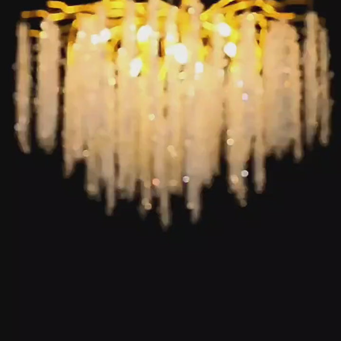 Modelul 27096/1200+550 OG+FGD este un candelabru impunător, cu accente elegante aurii și detalii din cristale decorative, ideal pentru interioare luxoase sau spații ample precum livinguri înalte, săli de evenimente sau recepții.