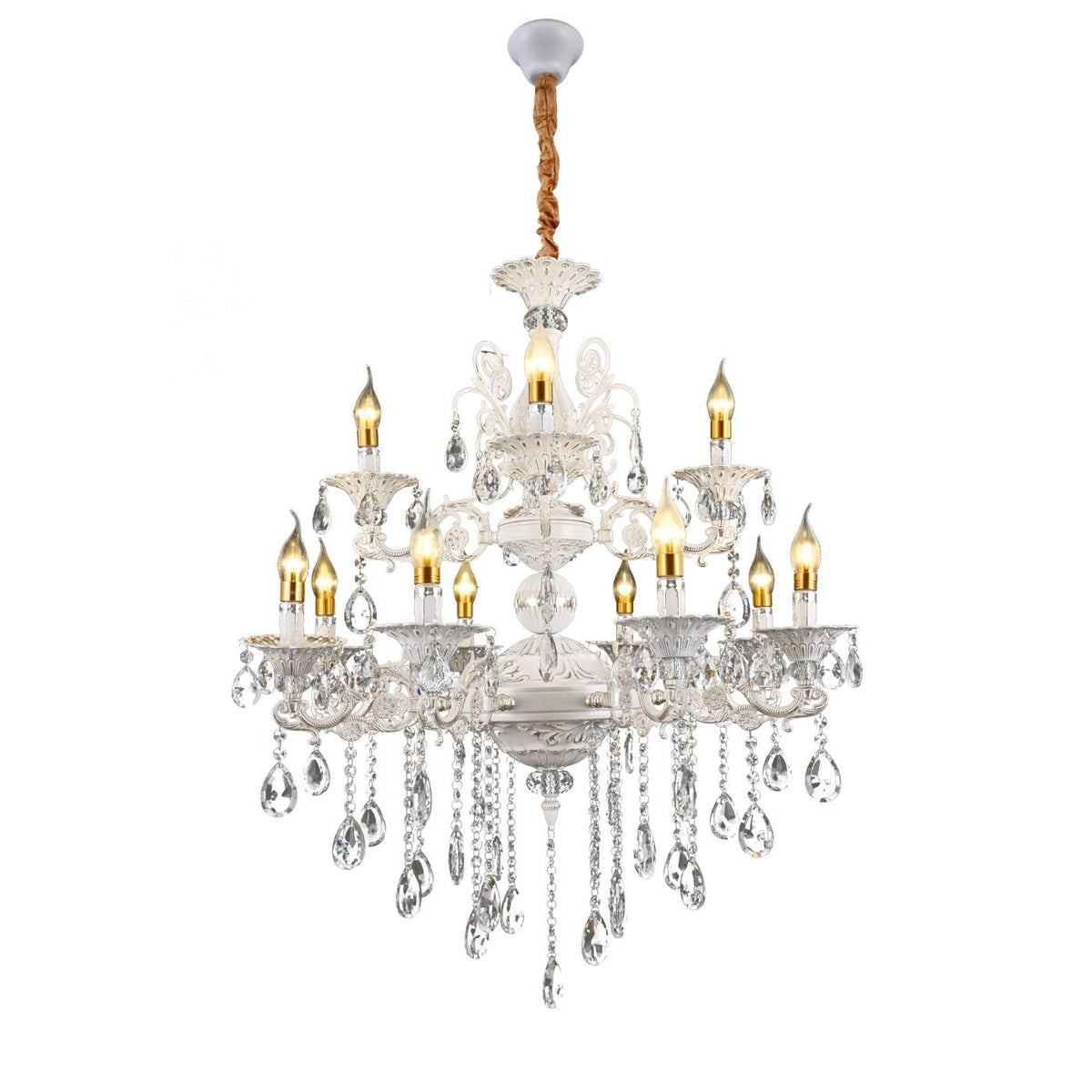 Transformă orice încăpere într-un spațiu grandios cu acest candelabru cu cristale, finisaj argintiu și structură pe două nivele. Cu 12 brațe elegante și o înălțime de 90 cm, este alegerea ideală pentru interioare ample, cu tavan înalt – cum ar fi holuri, livinguri sau săli de recepție.