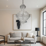Acest model grandios impresionează prin înălțimea sa de 1100 mm și straturile multiple de cristale transparente, atent așezate în formă de cascadă. Este o piesă centrală de impact, creată pentru a adăuga rafinament și prestanță decorului. Cu 22 de socluri E27, oferă o iluminare intensă, ideală pentru spații generoase.