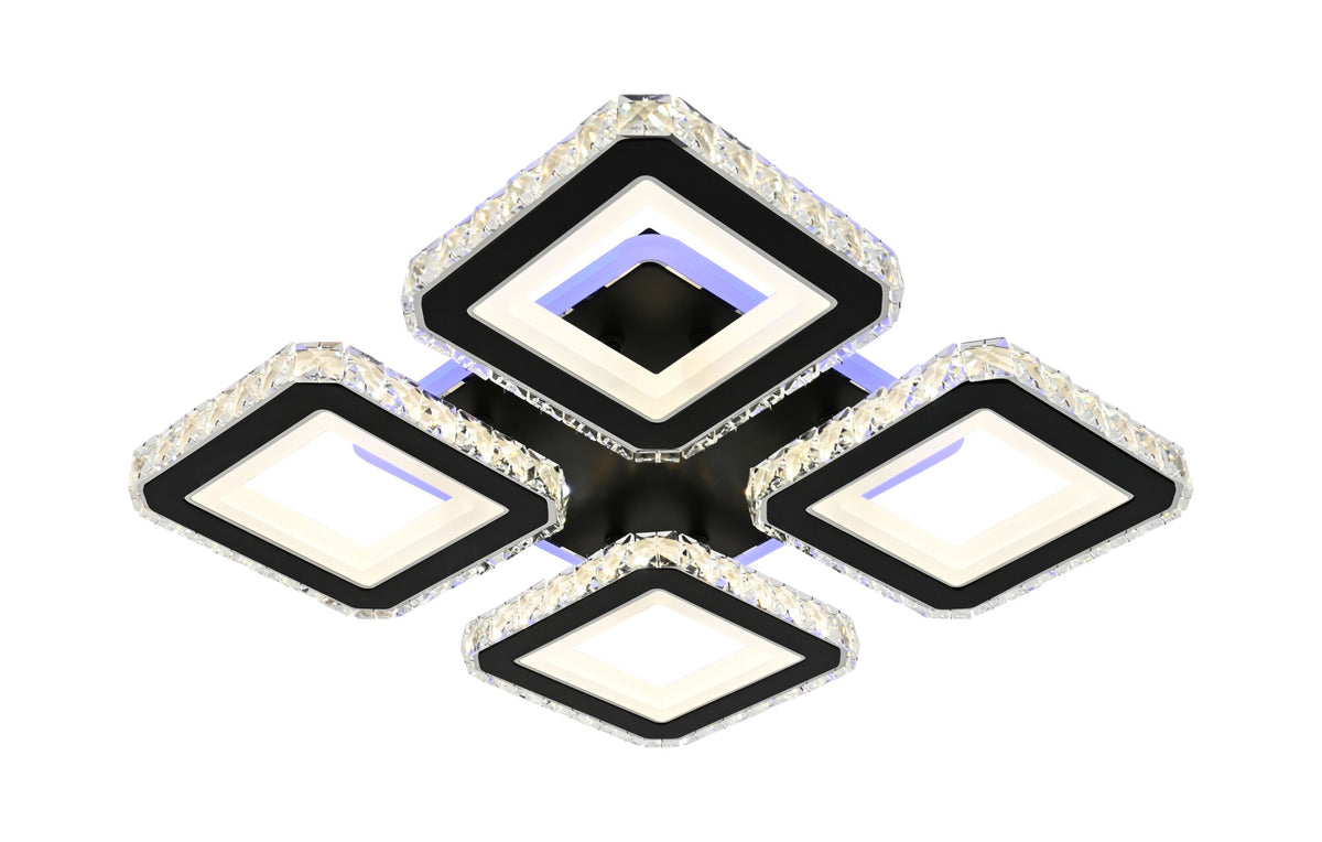 Lustra LED L7965/4CZ BK+CR este alegerea ideala pentru incaperile compacte ce necesita un iluminat eficient si un accent decorativ modern. Cele patru patrate cu margini cristaline ofera o lumina uniforma si eleganta, iar finisajul negru cu accente cromate se potriveste perfect in decoruri contemporane. Cu telecomanda inclusa, poti ajusta temperatura de culoare in functie de momentul zilei.