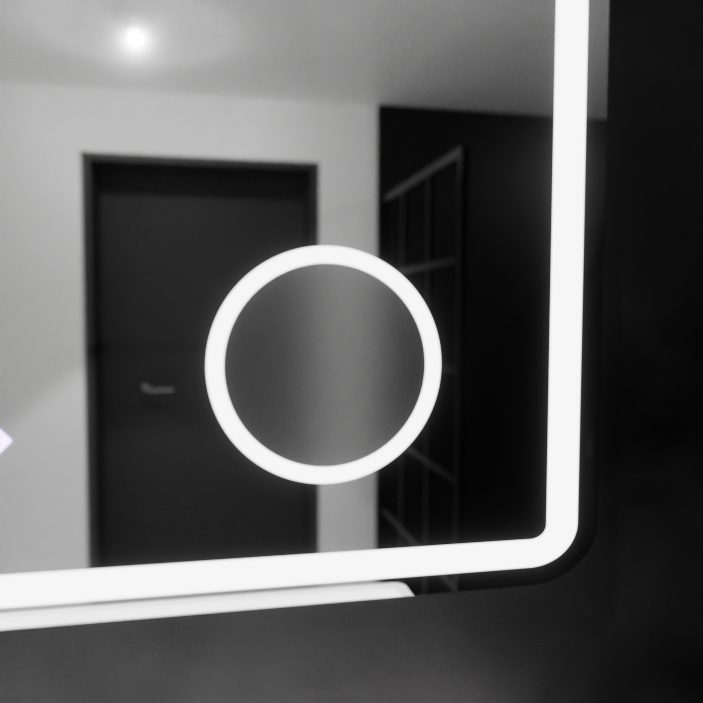Oglindă LED Inteligentă 90×75 cm – Cu Lupă, Dezaburire și Afișaj Digital