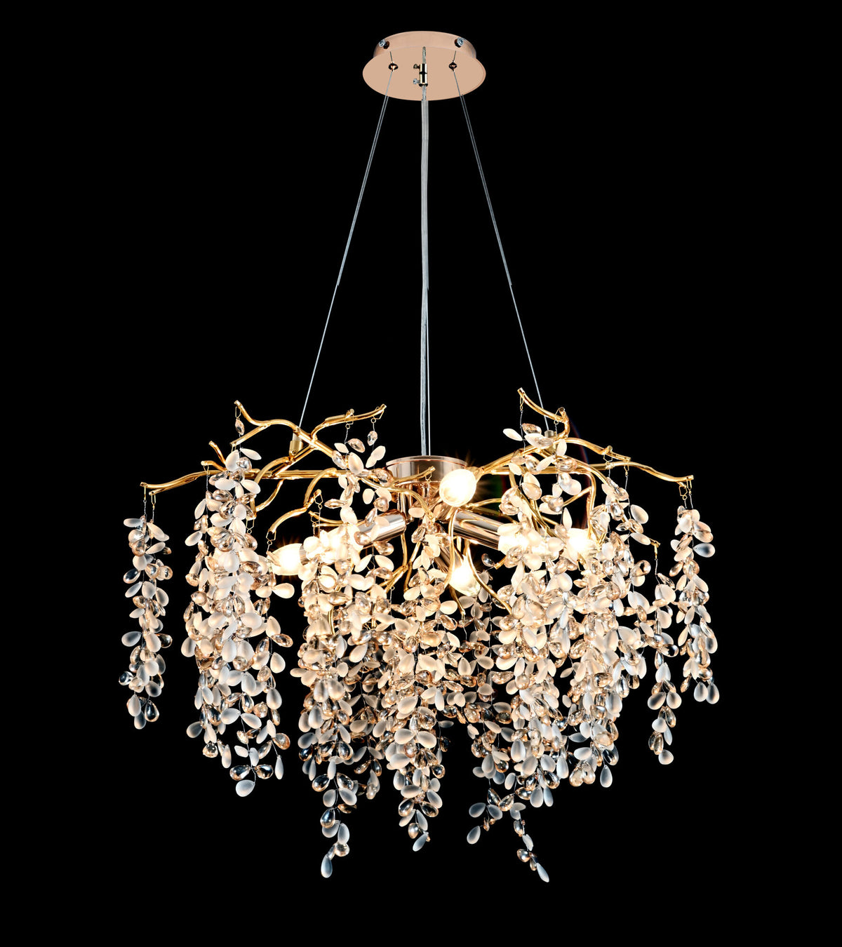 Modelul 27096/600 OG+FGD este un candelabru decorativ cu design clasic-modern, perfect pentru a adăuga un accent elegant în living, dining sau holuri înalte. Cu o structură aurie și finisaje rafinate, oferă un aer luxos fără a încărca spațiul.