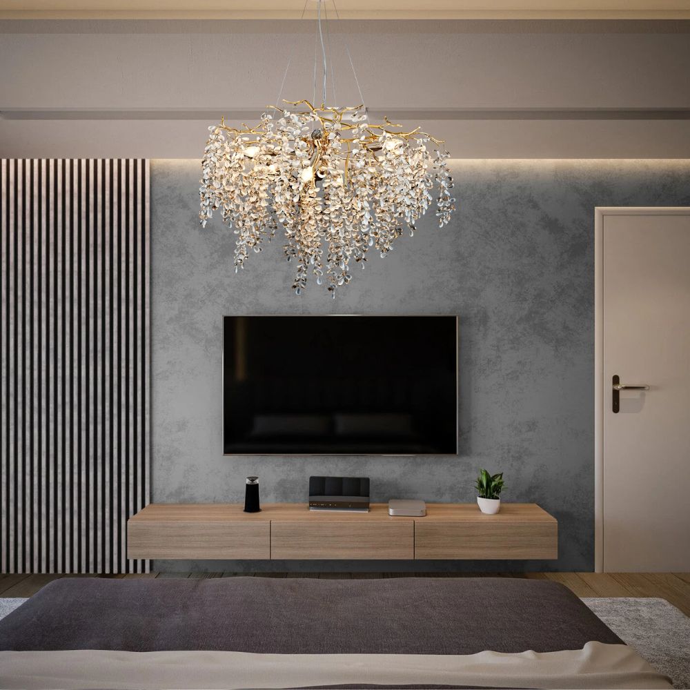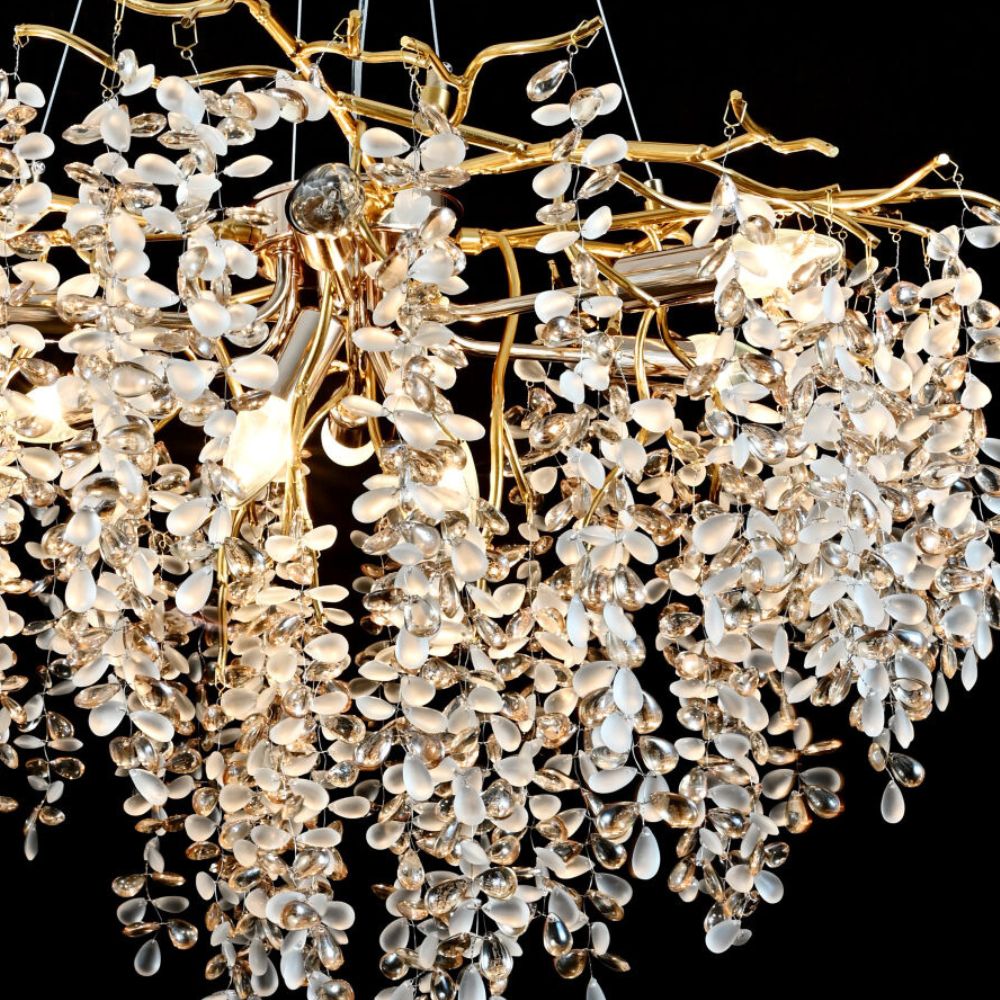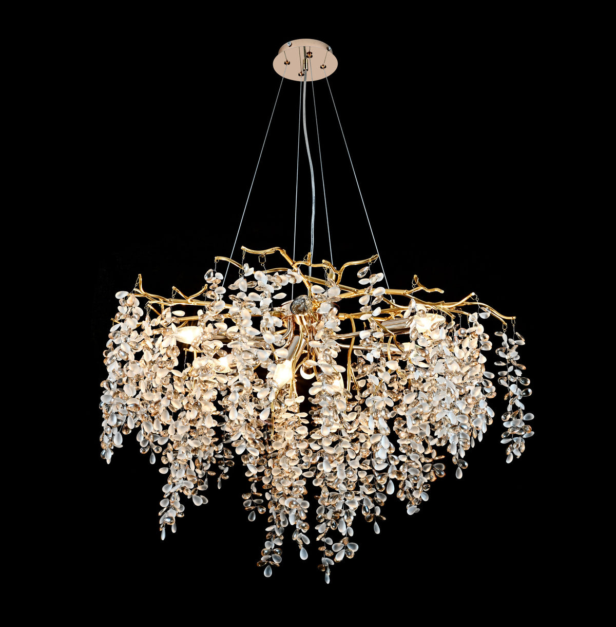Modelul 27096/800 OG+FGD este un candelabru elegant cu un design rafinat, ideal pentru interioare spațioase care necesită un corp de iluminat impunător și decorativ. Structura sa aurie, în combinație cu elementele fine, adaugă un plus de stil și lux în orice living, sală de mese sau zonă de recepție.