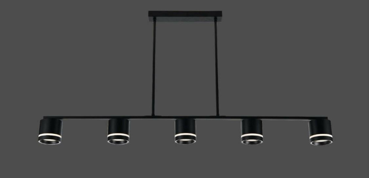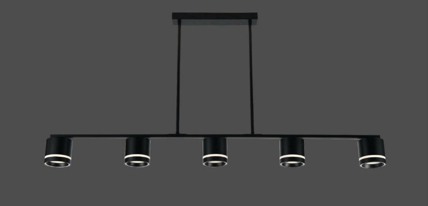 Pendul LED 59203/5BM cu design modern și finisaj negru mat, ideal pentru iluminarea zonelor de dining, living sau spații comerciale. Este prevăzut cu 5 socluri GX53 care asigură o lumină uniformă, cu temperatură de culoare reglabilă între 3000K și 6500K, potrivită atât pentru atmosferă caldă, cât și pentru lumină rece de lucru.
