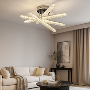 Modelul JB001-5 este o lustra LED cu design arhitectural modern, care se remarcă prin cele 5 brațe încrucișate cu finisaj cristalizat și efect decorativ. Structura elegantă și tehnologia LED integrată o fac perfectă pentru spații contemporane precum livinguri, dormitoare, birouri sau zone open-space.