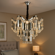 Candelabrul 78012-450 CH aduce un plus de eleganță în orice interior datorită designului său rafinat realizat din cristale fațetate și finisaj cromat. Structura în trepte și jocul de reflexii creează un efect spectaculos, ideal pentru dormitor, living sau zone de dining.