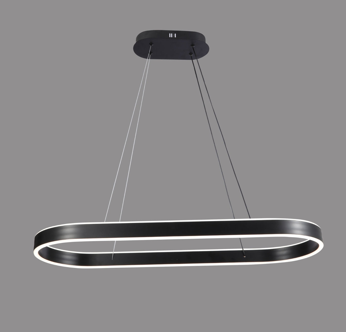 Modelul A17/80*30 BK se remarcă prin designul său rectangular suspendat, finisajul negru mat și iluminarea eficientă cu LED integrat. Perfect pentru spații precum dining, birouri, recepții sau livinguri cu un stil arhitectural minimalist.